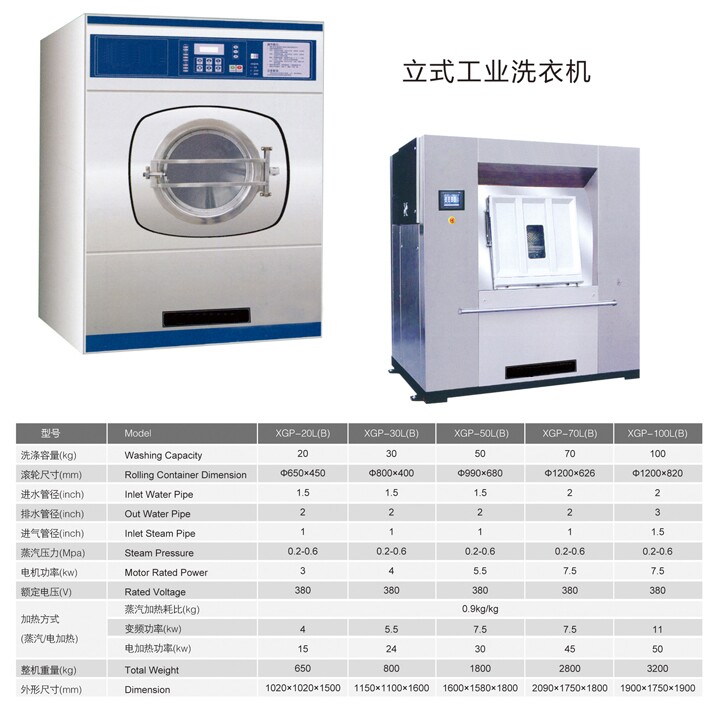 XGP系列立式工業洗衣機是在消化國內外同類產品技術的基礎上,研制開發的新一代洗滌機械,適用于洗滌各種棉織、毛紡、麻類、化纖混紡等衣物織品,對工礦、學校、賓館、旅館、醫院等都具有廣泛用途,是選擇減輕勞動強度,提高工作效率,降低能耗的理想設備。