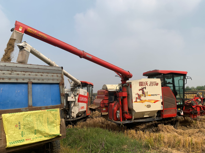 同時,針對陰雨天氣土壤濕度大、作物易纏繞機械的問題,作業隊伍針對性優化收割方案:在田間鋪設防滑墊保障機械通行安全,為全喂入聯合收割機安裝“扶倒器”,將稻谷損耗率降至最低;安排專人在收割現場實時跟進,及時處理機械故障、調整作業節奏,確保收割效率與顆粒歸倉率雙提升。值得一提的是,在推進搶收工作的同時,中心已提前完成600余畝油菜種植任務,以實際行動響應2025年“穩糧擴油”政策要求,實現“收”“種”無縫銜接。