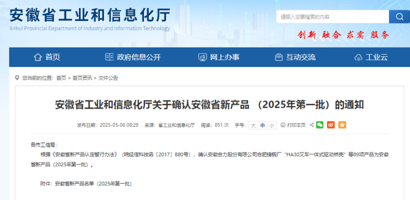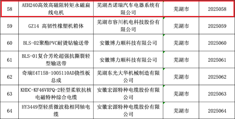 近日,安徽省工業和信息化廳官網發布《安徽省工業和信息化廳關于確認安徽省新產品 (2025年第一批)的通知》,其中,鳩江區蕪湖杰諾瑞汽車電器系統有限公司“AEH240高效高磁阻轉矩永磁扁線電機”產品榜上有名。
