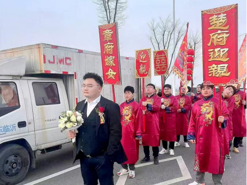 圖為樓梯村民踐行婚事新辦,取消婚車