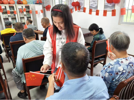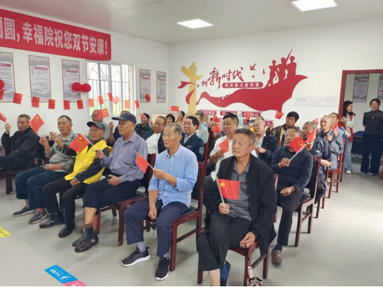 活動(dòng)當(dāng)天的幸福院格外熱鬧,處處洋溢著歡樂祥和的氛圍。上午9時(shí)許,活動(dòng)在全體人員齊唱《歌唱祖國》中拉開序幕。老人們精神矍鑠,社區(qū)志愿者們活力滿滿,大家手持小國旗,伴隨著激昂的旋律齊聲高歌,嘹亮的歌聲回蕩在院落上空,不僅唱出了對祖國的無限熱愛,更唱出了新時(shí)代農(nóng)村生活的幸福感與獲得感。